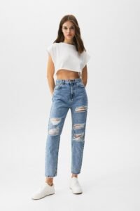 Home Casual Wear Women Casual Wear Ripped Mom Jeans – Contains Recycled Cotton